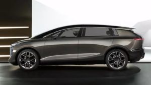 Внешний дизайн явно несет в себе ключевые конструктивные особенности Audi, но в нем явно чувствуется влияние прогресса. Доминантой носовой части является классическая передняя маска Singleframe, окруженная цифровыми «глазами» фар. Автомобиль продолжается назад через широкую изогнутую арку крыши и характерные боковые пороги за батареями.